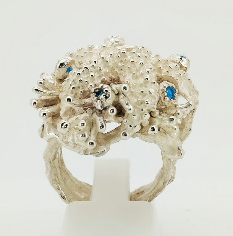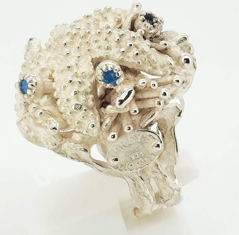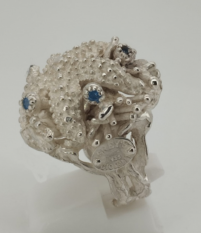 Anello in argento 925/1000 , zirconi. Misure superficie 2.5x2.5 cm, alto 1.2 cm. Misura anello 12-13, personalizzabile su richiesta.
